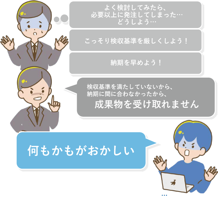 仕事を受けたけど、発注者から仕事のやり方や作業の時間まで事細かに指示されるし、予定にない仕事も頼まれたりでずっと働きづめ…
